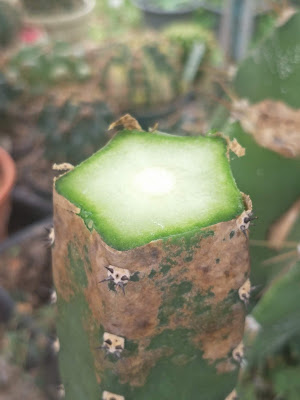 Harrisia is a great root stocks due to their thickness and ring size. The thickness give us a good guarantee of grafting success as there is more contact between scion and root stock. Plus, it always put out a lot of sticky sap which means it is very unlikely to fail from dryness unless they does not place correctly or zero pressure applied.